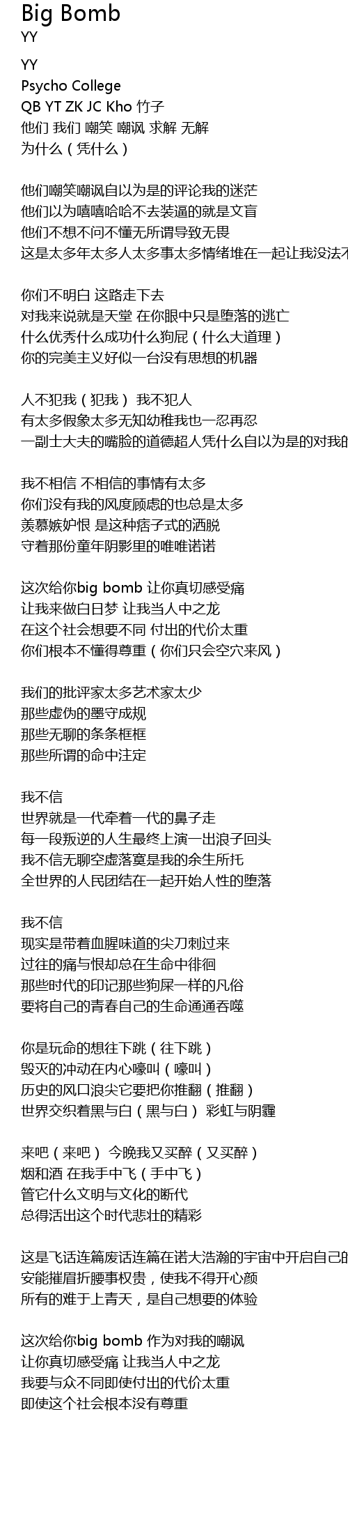 | zhè cì gěi nǐ big bomb zuò wéi duì wǒ de cháo fěng | |