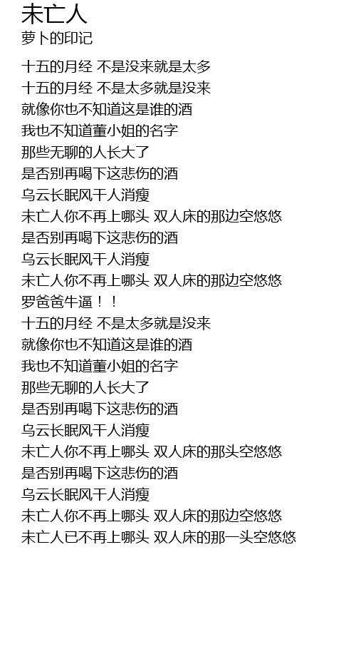 | [02:51.97] | 未亡人已不再上哪头 双人床的那一头空悠悠 |