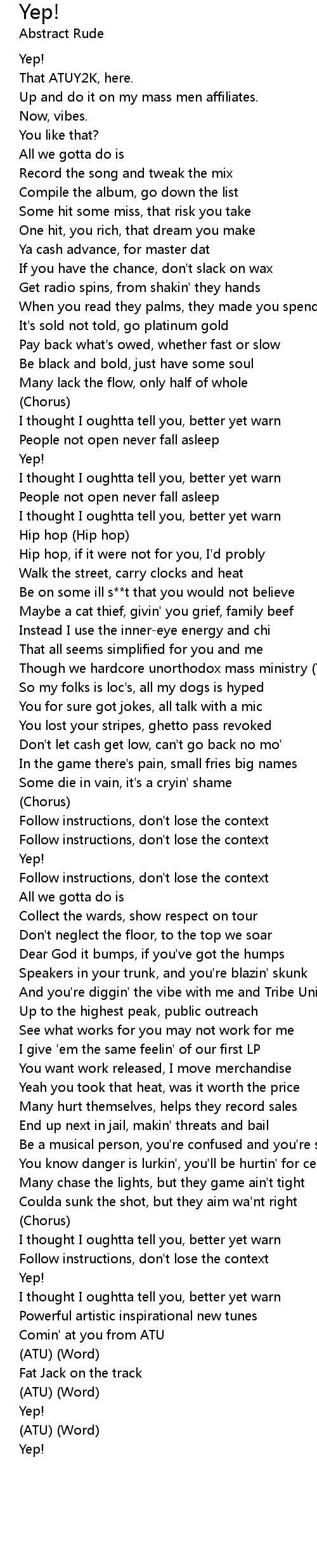 Hip hop, if it were not for you, I'd probly |