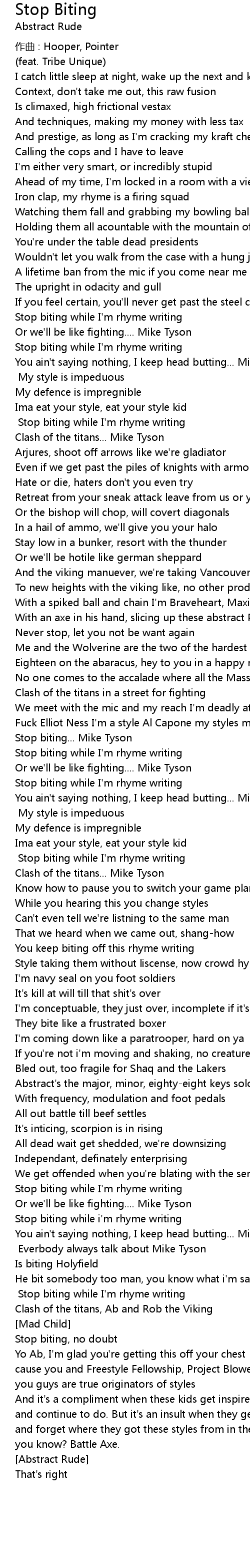 | Abstract Rude Stop biting while I' m rhyme writing | |