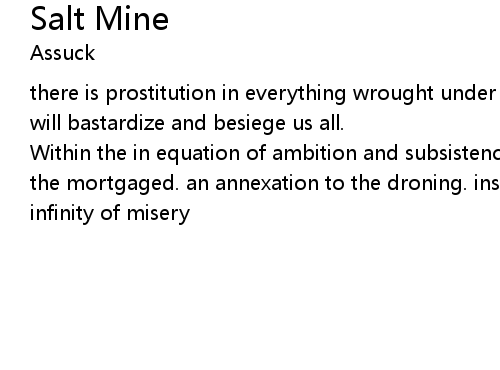 | there is prostitution in everything wrought under the sun. there is agenda that will bastardize and besiege us all. | |