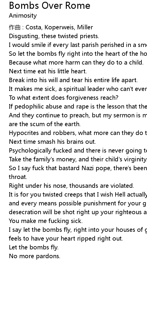 | So I say fuck that bastard Nazi pope, there' s been a dick down Benedict' s holy throat. | |