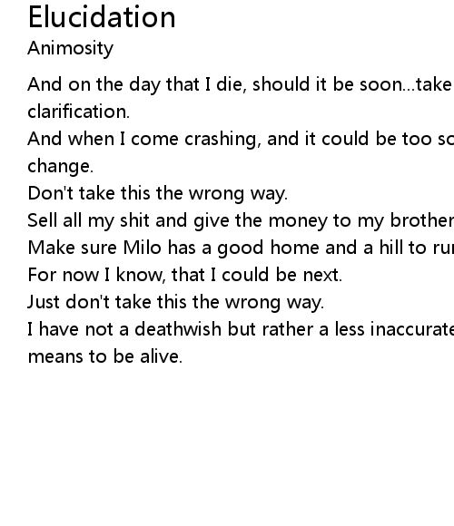 | I have not a deathwish but rather a less inaccurate understanding of what it means to be alive. |