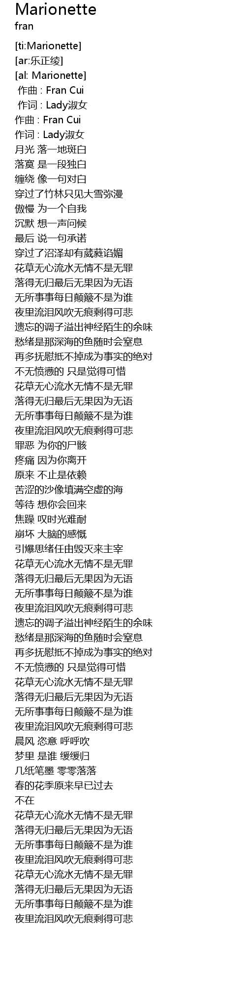 | [00:01.58] | zuo qu : Fran Cui |