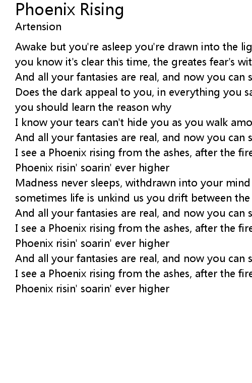 And all your fantasies are real, and now you can see I see a phoenix rising