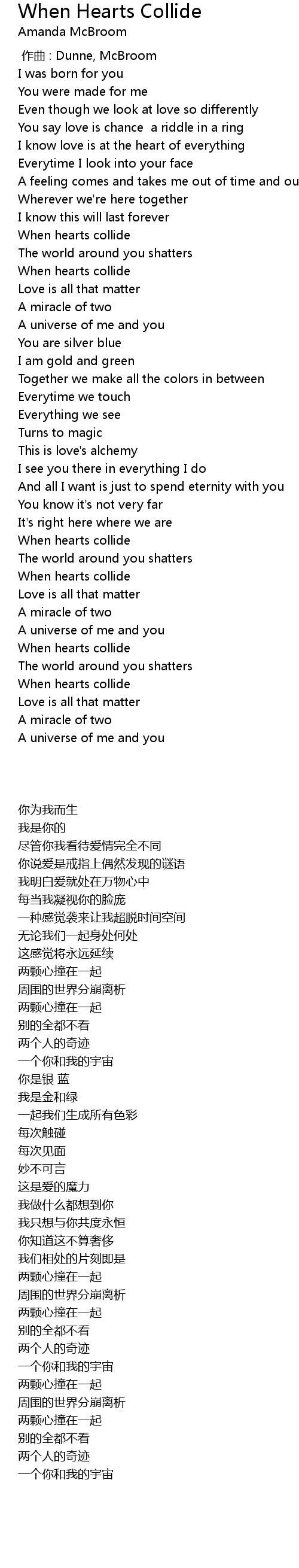 | 歌曲 | When Hearts Collide |