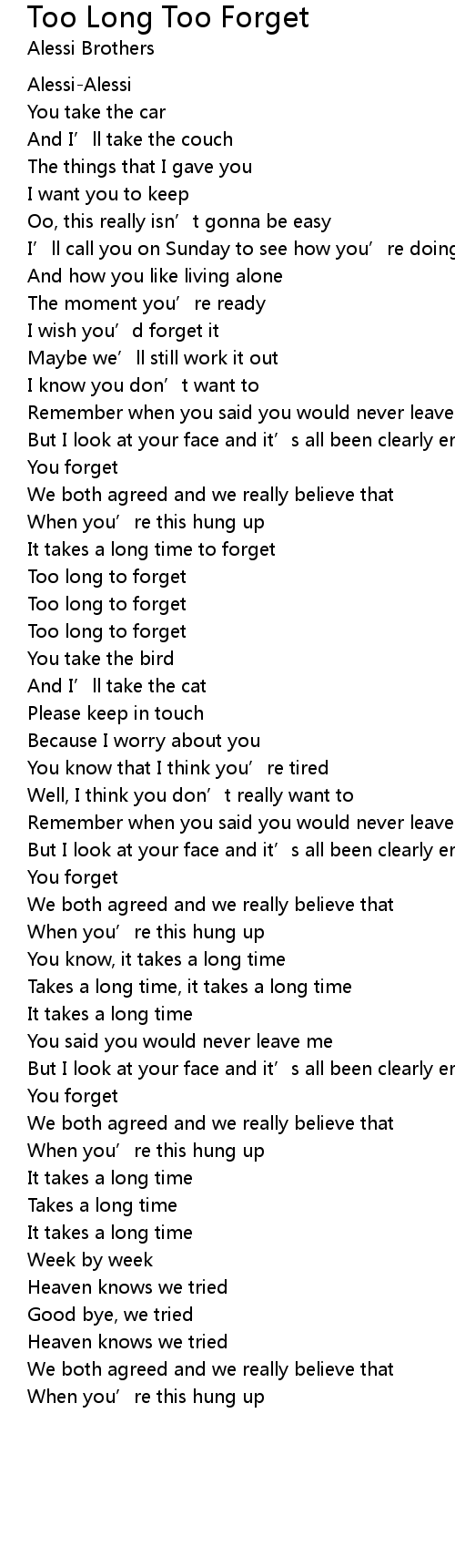 | Too long to forget | |