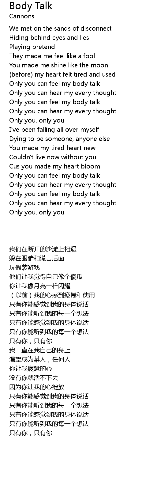 Only you can feel my body talk |