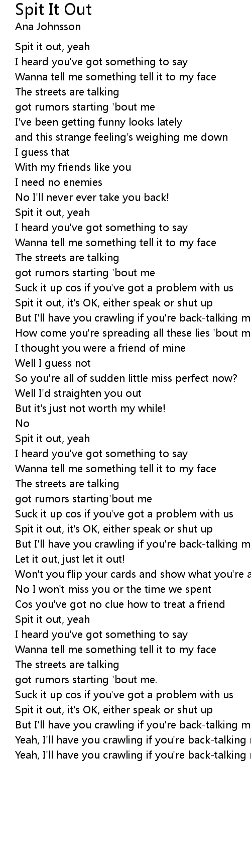 Spit it out, it's OK, either speak or shut up |