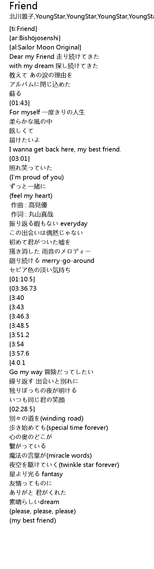 | [01:37][4:0.1] | I wanna be with you, my best friend. |