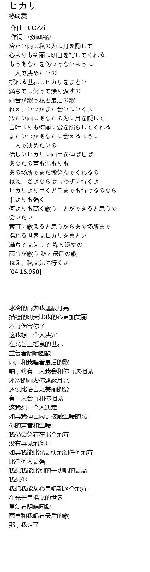 | [00:58.550] | 揺れる世界はヒカリをまとい |