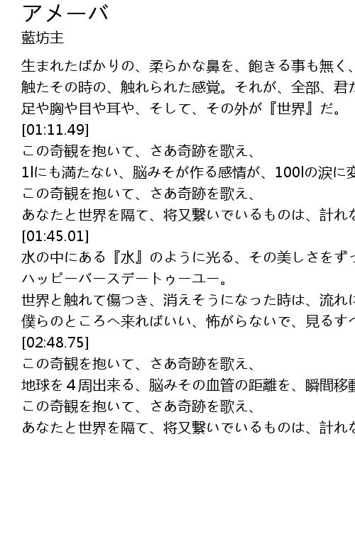 | 歌曲 | アメーバ |