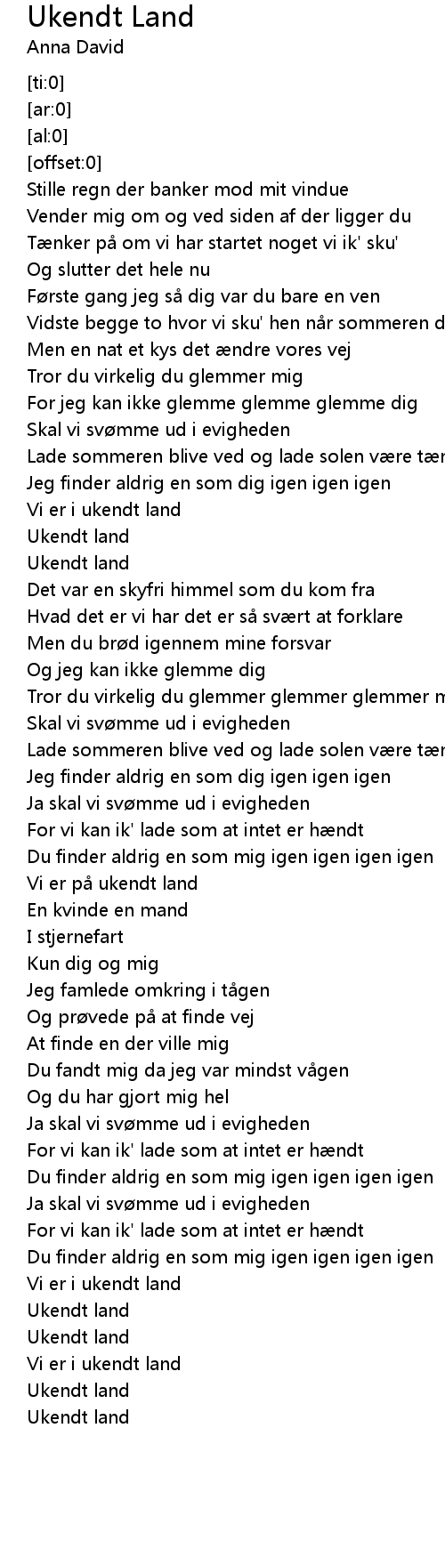 | [00:42.40] | For jeg kan ikke glemme glemme glemme dig |