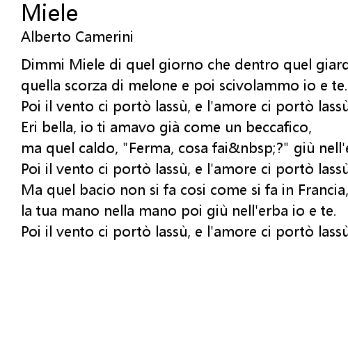 | Dimmi Miele di quel giorno che dentro quel giardino | |