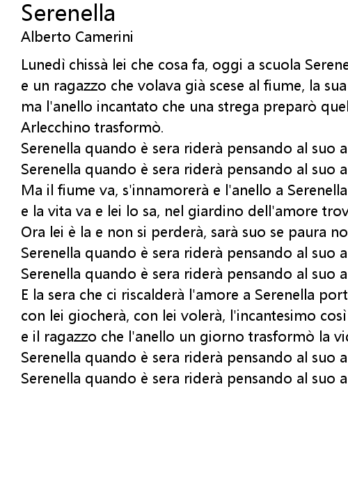 | Serenella quando e sera ridera pensando al suo amore grande a quando l' amera. | |