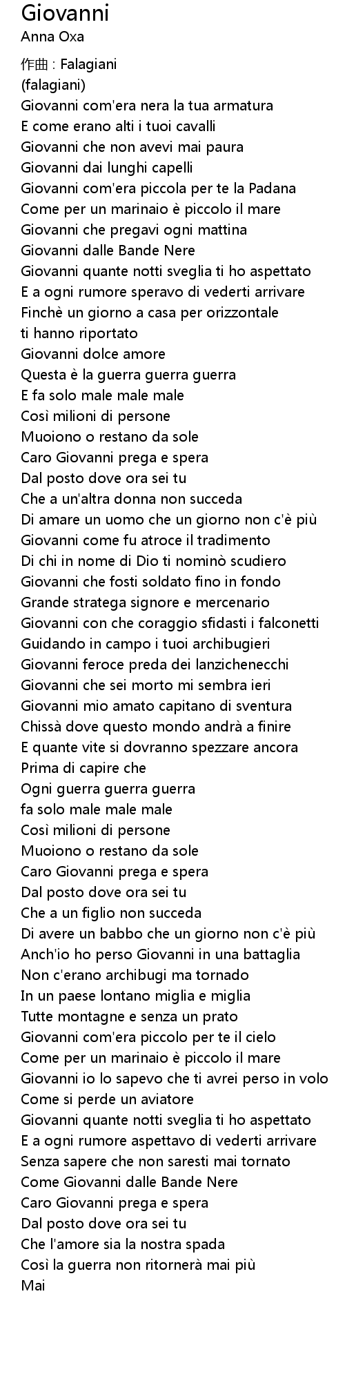 | Giovanni io lo sapevo che ti avrei perso in volo | |