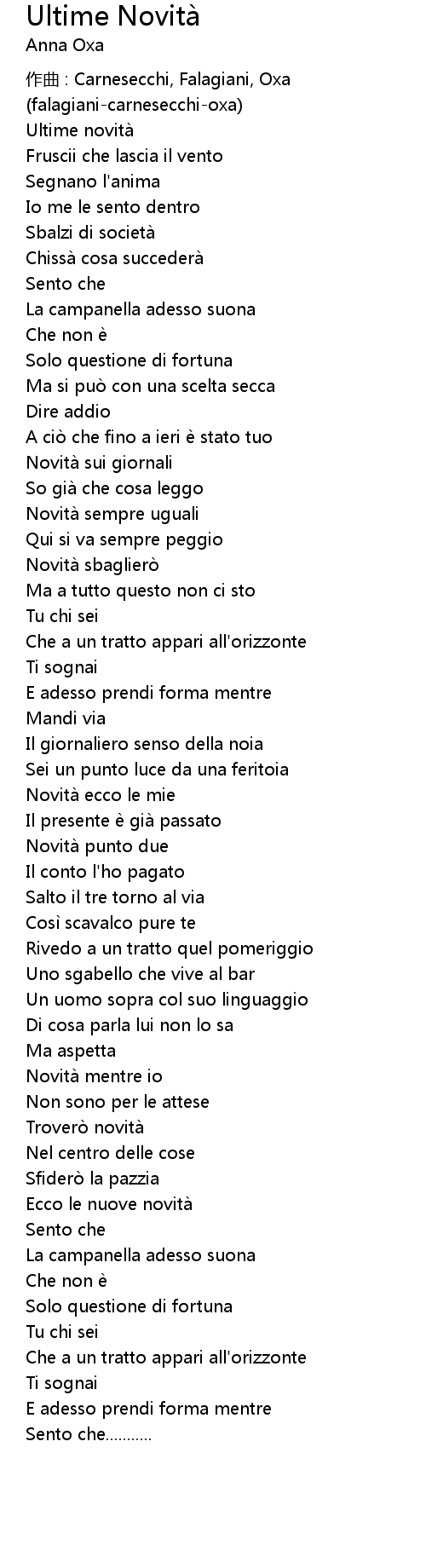 | 歌曲 | Ultime Novità |