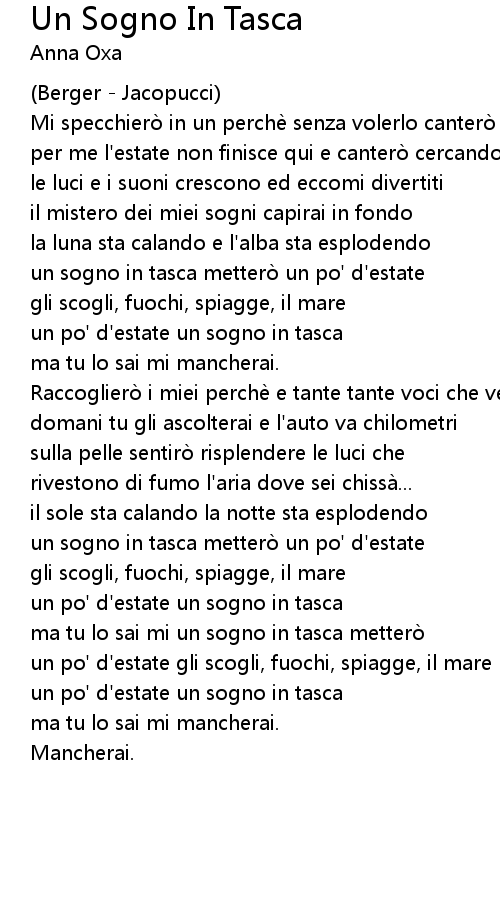 | ma tu lo sai mi un sogno in tasca mettero | |