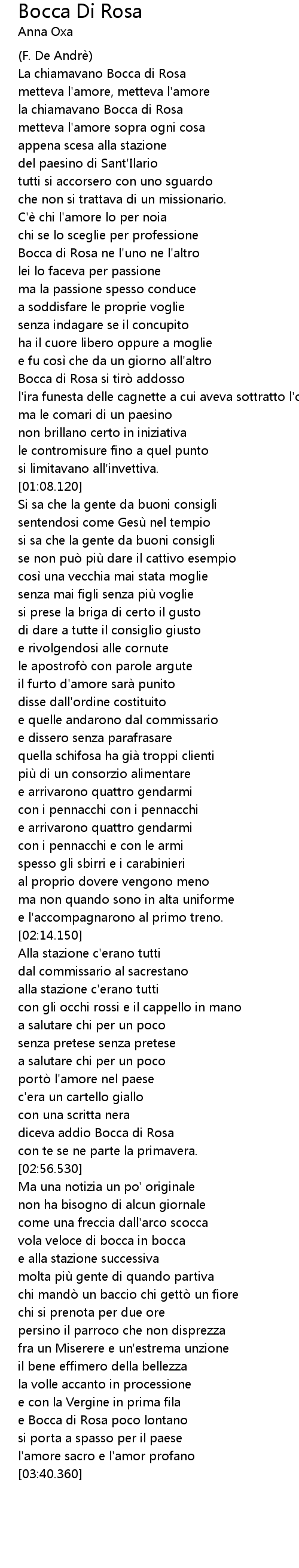 | [00:38.710] | Bocca di Rosa ne l' uno ne l' altro |