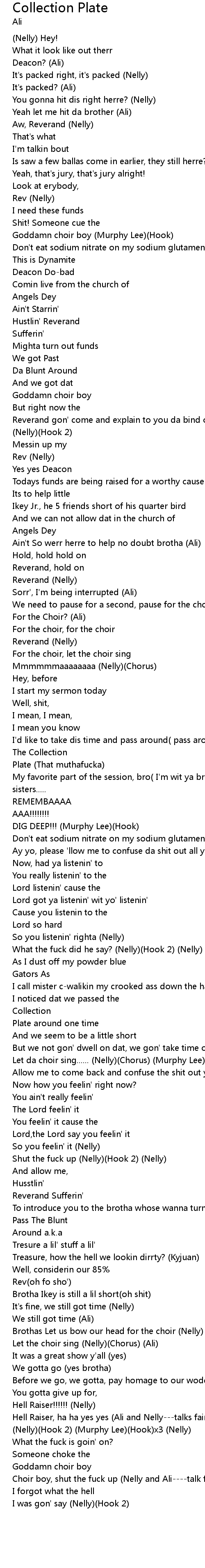 Choir boy, shut the fuck up (Nelly and Ali----talk faintly in the back) (Nelly)