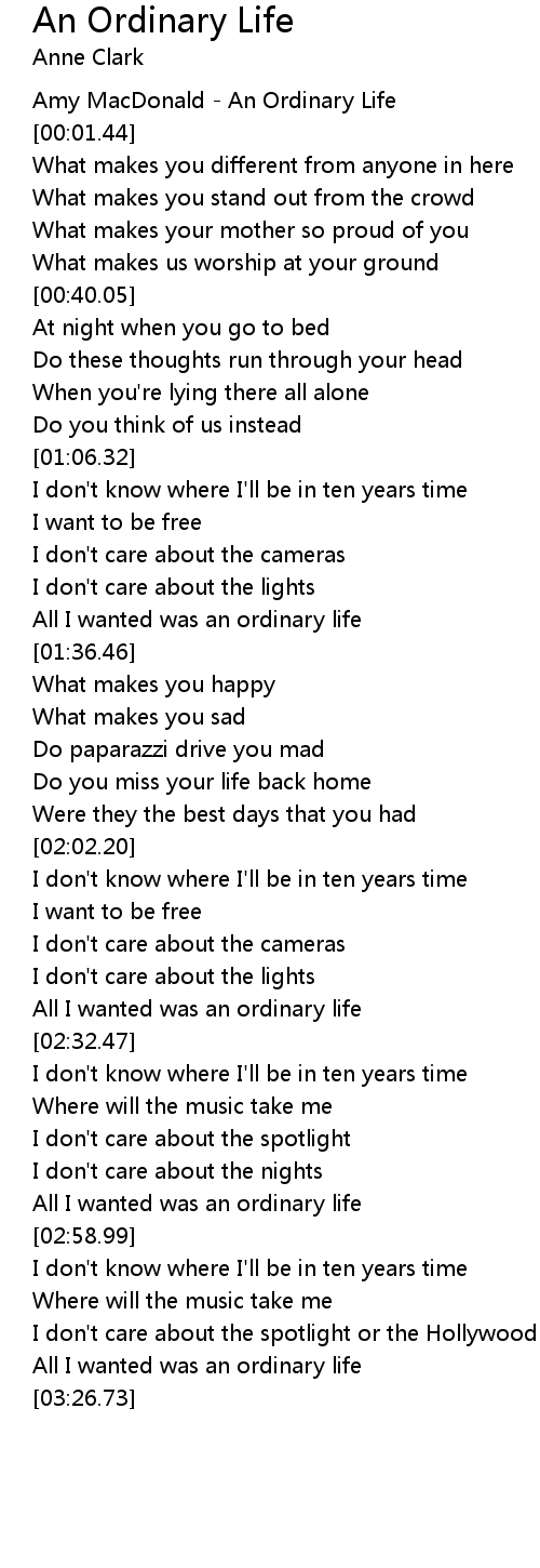 [00:00.71] Amy MacDonald - An Ordinary Life
