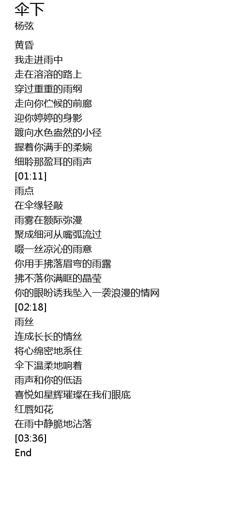 | [01:49] | 你用手拂落眉弯的雨露 |