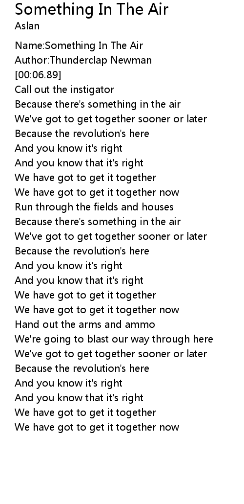 | [00:16.04] | Because there's something in the air |