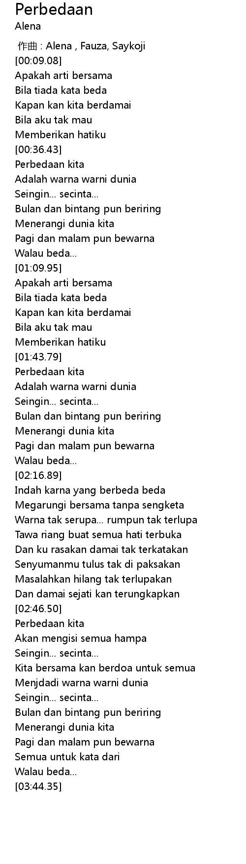 | [00:00.00] | 作曲 : Alena , Fauza, Saykoji |