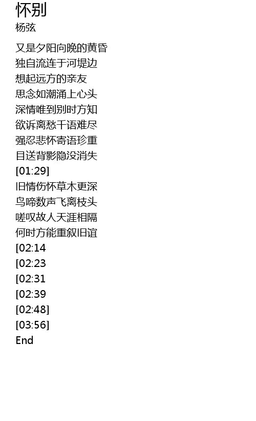 | [03:46][02:39] | 但托长风寄我慰问意 |