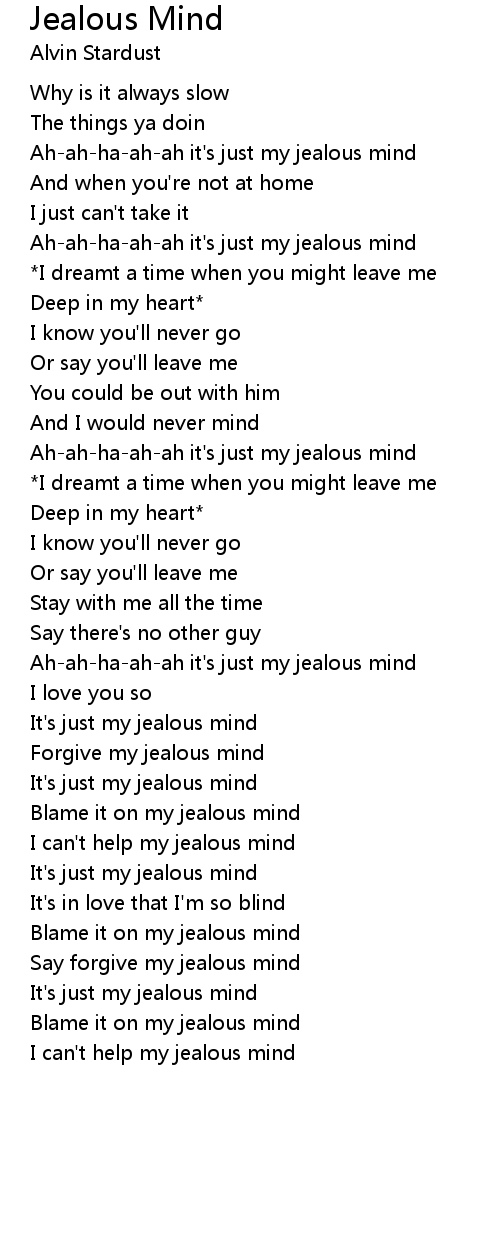 Ah-ah-ha-ah-ah it's just my jealous mind |