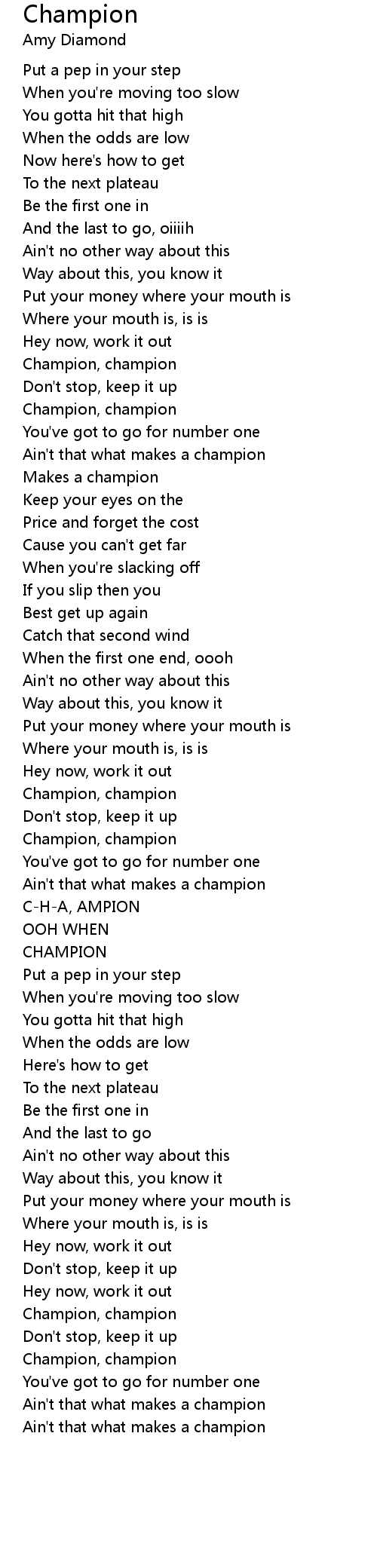 Ain't that what makes a champion |