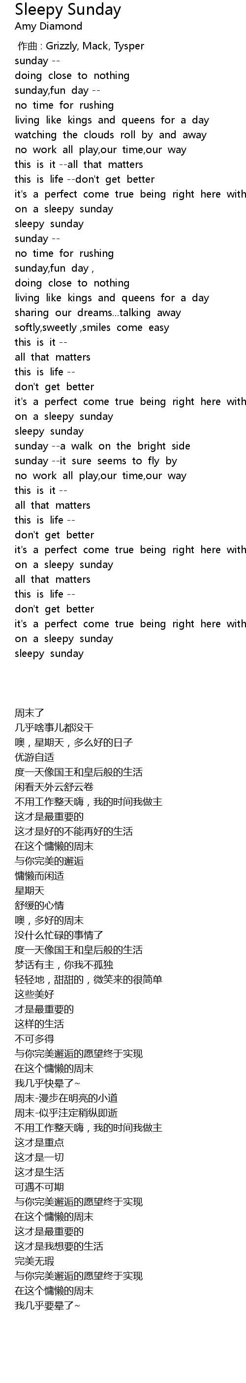 | [00:25.603] | 噢,星期天,多么好的日子 |