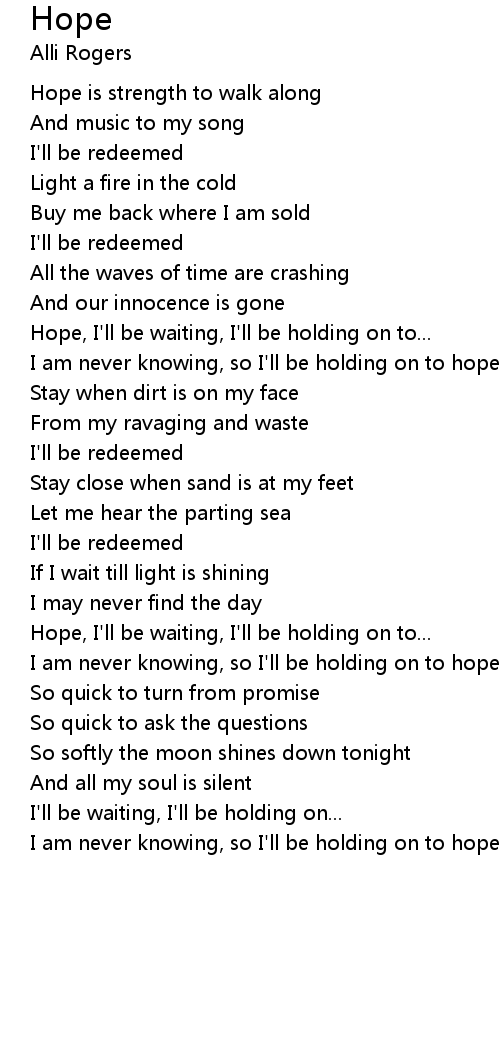 Hope, I'll be waiting, I'll be holding on to... |