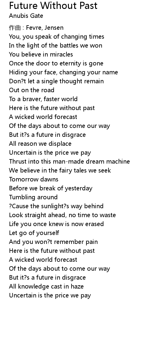 | 歌曲 | Future Without Past |