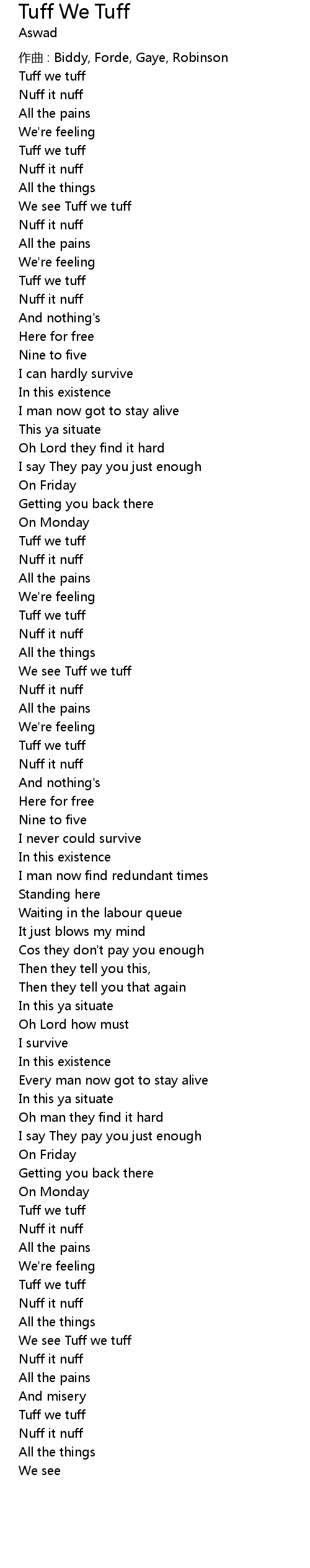 | 歌曲 | Tuff We Tuff |