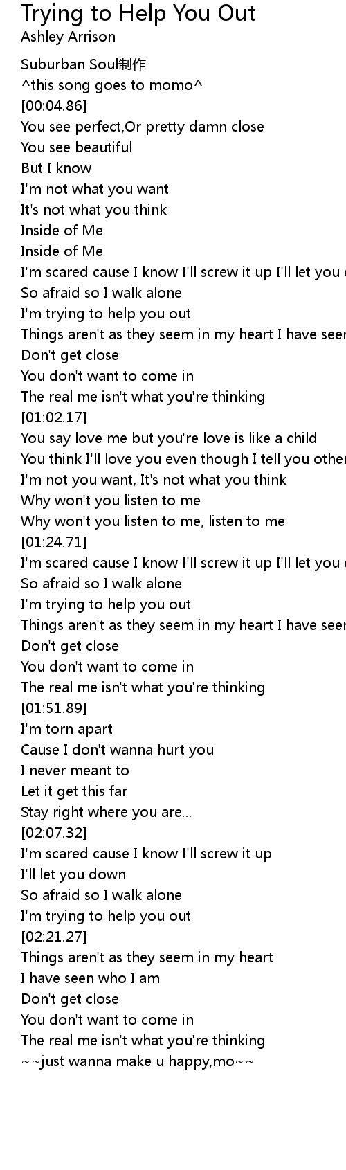 | [00:46.53] | I'm trying to help you out |
