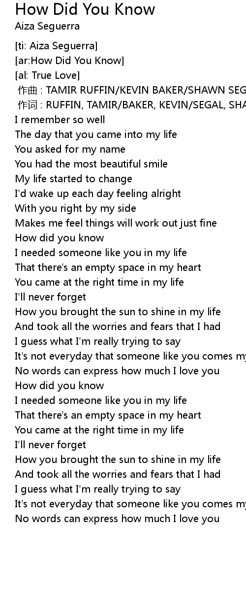 | 歌曲 | How Did You Know |