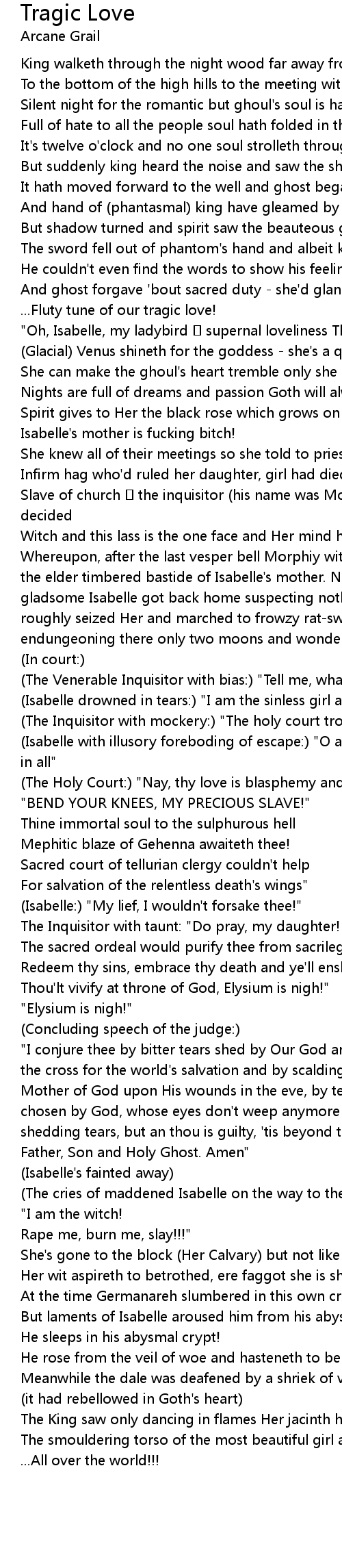 | (The cries of maddened Isabelle on the way to the sacrificial stake:) | |
