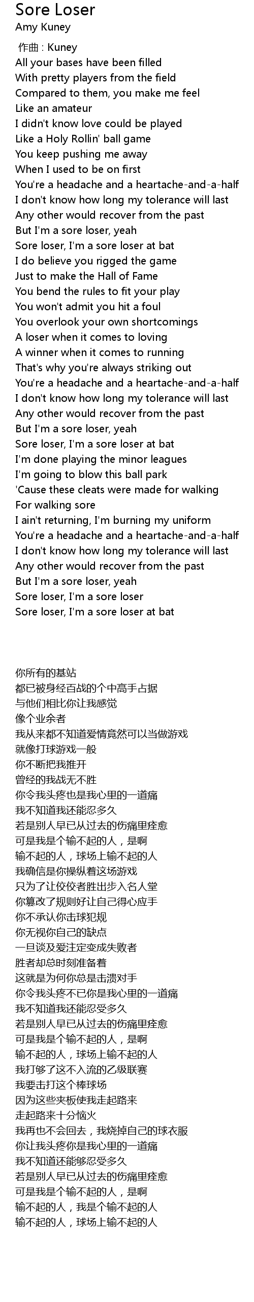 | [02:50.22] | Sore loser, I' m a sore loser at bat |