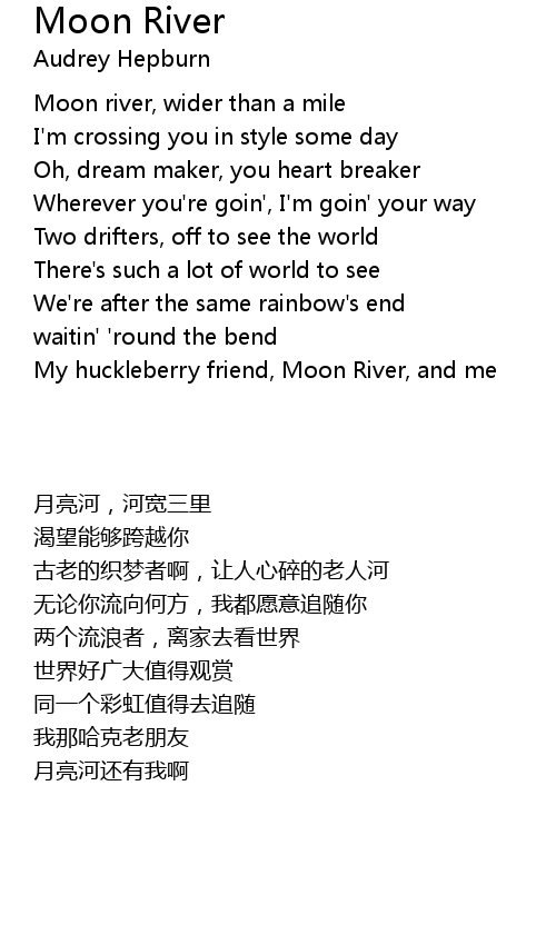 | [01:18.550] | My huckleberry friend, Moon River, and me |
