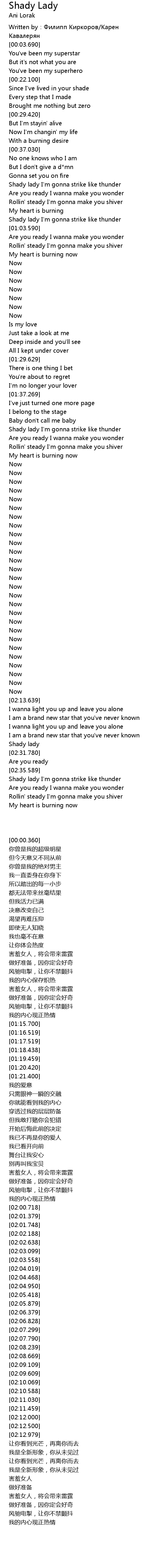 | [02:37.639] | Shady lady I' m gonna strike like thunder |