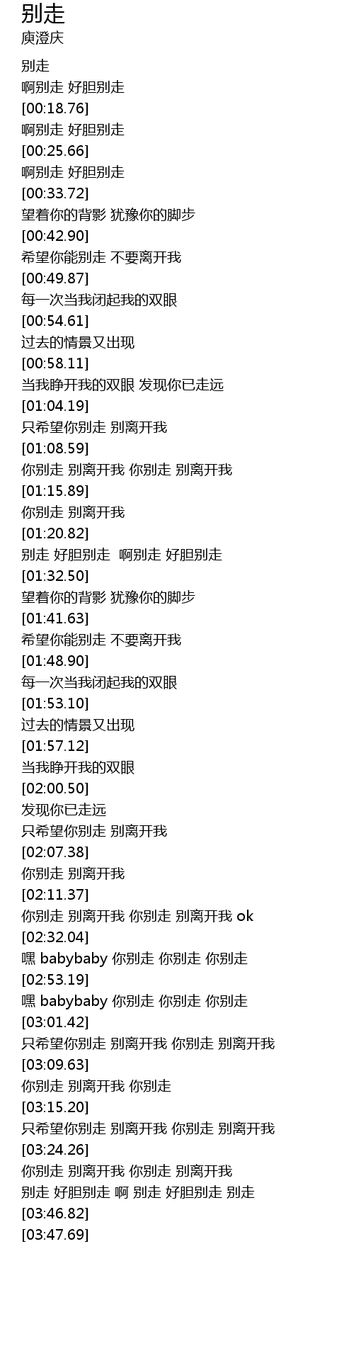 | [02:12.49] | 你别走 别离开我 你别走 别离开我 ok |