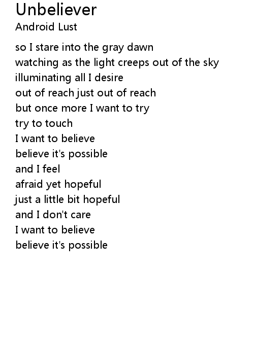| 歌曲 | Unbeliever |