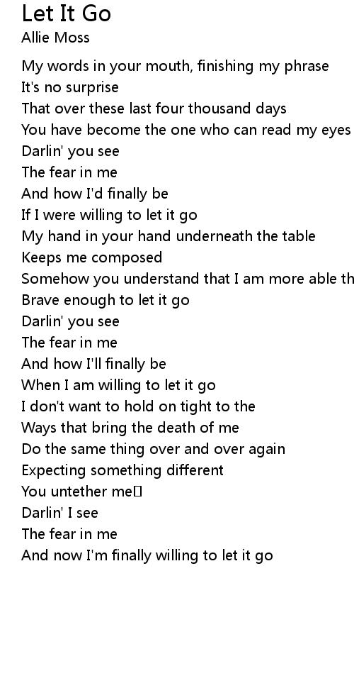 | And now I' m finally willing to let it go |