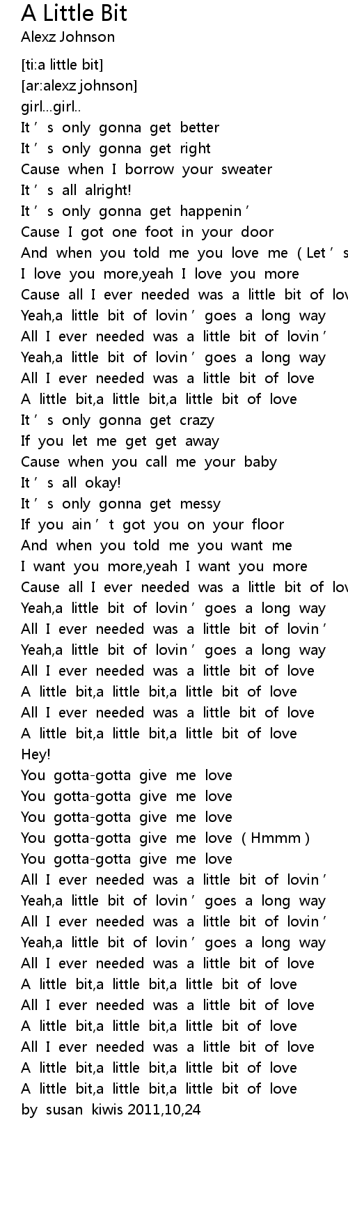 | [02:53.291] | All I ever needed was a little bit of lovin ’ |