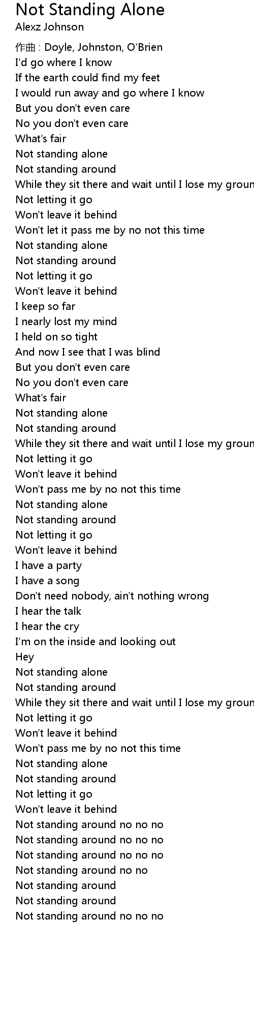 | 歌曲 | Not Standing Alone |