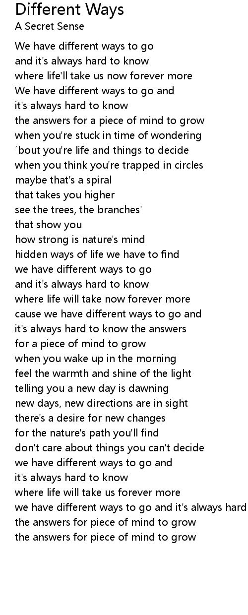 | hidden ways of life we have to find | |