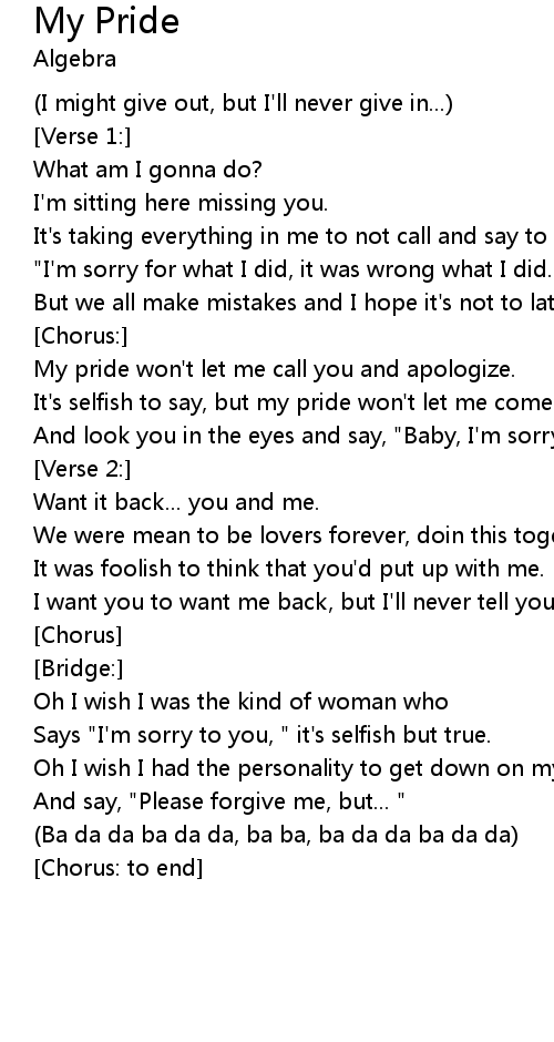 | And look you in the eyes and say, "Baby, I'm sorry." | |