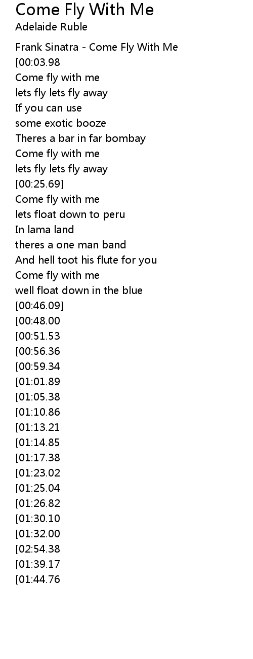 | [02:59.96][02:54.38][01:37.15] | Come fly with me |