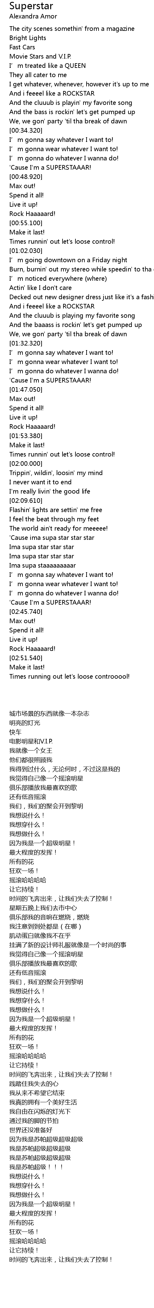 | [00:46.180] | 'Cause I'm a SUPERSTAAAR! |
